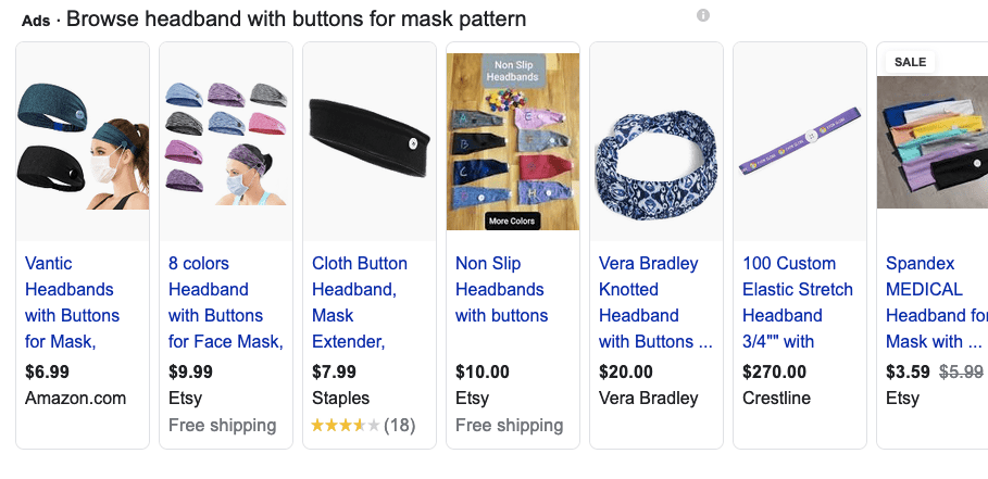 The minute I got home I Googled “headband with buttons for mask” and up came dozens of choices. I ordered one headband to try it out. It was perfect. Soft, stretchy, tight enough to fit but not give me a headache. Then I ordered three more, in different colors and patterns.